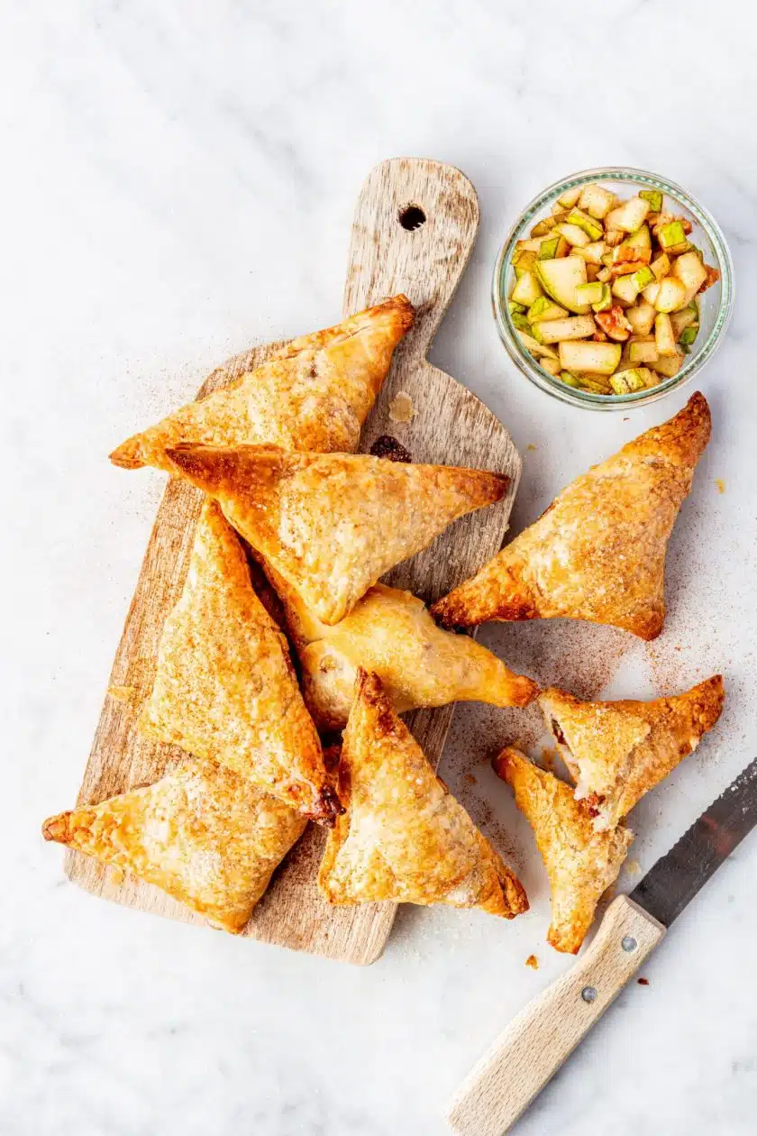 Appelflappen, iedereen kent ze en bijna iedereen is er gek op. Bladerdeeg in de vorm van een driehoek, gevuld met appel, rozijnen en kaneel. Naast dat ze lekker zijn, zijn ze ook nog eens makkelijk om te maken. Aan een goed recept moet je niet rommelen, toch gaan we je met deze perenflappen wel uitdagen. Want wat je met appel kunt, kan natuurlijk met elke andere soort fruit. Vandaag delen we onze perenvariant, maar stop daar vooral niet en vul er ook een paar met bijvoorbeeld bramen, frambozen en/of blauwe bessen. Of ga voor groenten, wij maakten bijvoorbeeld eerder al heerlijke pompoenflappen!