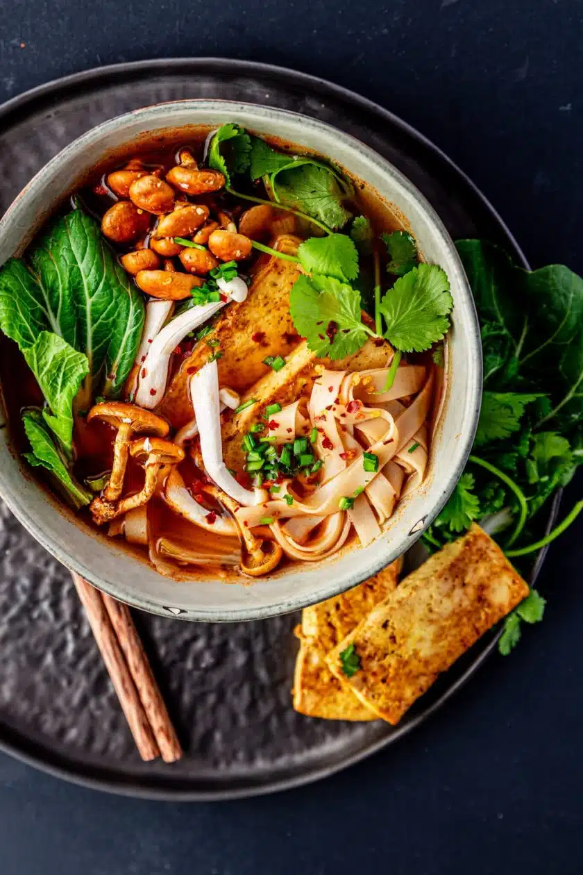 Spicy eten zorgt voor aanmaak van serotonine, het stofje dat je een geluksgevoel kan stimuleren. Deze pittige noedelsoep geeft je dus niet alleen een kick door de spicy kruiden maar zou zomaar ook nog eens een lach op je gezicht kunnen toveren. Dit soepje is hartverwarmend, lekker en gezond. Wij kiezen voor tofu als eiwitbron, maar een keer zin in iets anders? Dan is tempeh misschien wel een leuke variatie. Wat steviger dan tofu en volgens velen net iets makkelijker om op smaak te brengen!
