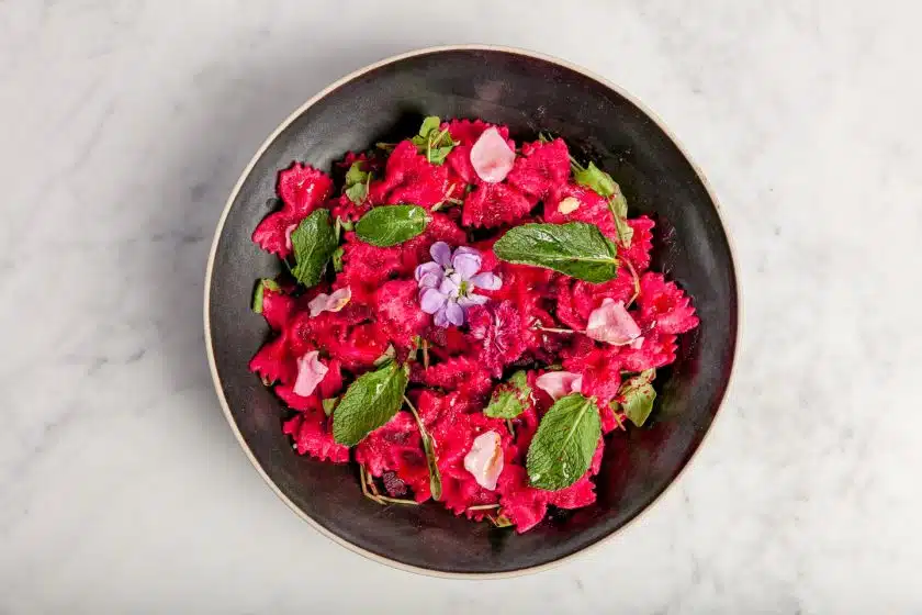 Roze pasta, dat kan niet anders dan een feestje worden – denk je ook niet? Maar hoe maak je het? Let us think pink… Biet! Deze doet het fantastisch in de pasta, maar ook in andere plantaardige recepten, zoals een sapje, smoothie of hummus is deze kleurrijke wortelknol een aanrader. Bonus op deze kleurrijke, vegan bietenpasta is de zoete smaak, daar gaat iedereen verliefd op worden. Liever een vegan pesto uit de supermarkt voor je pasta? En we weten ook wat de lekkerste vegan pastasauzen zijn.